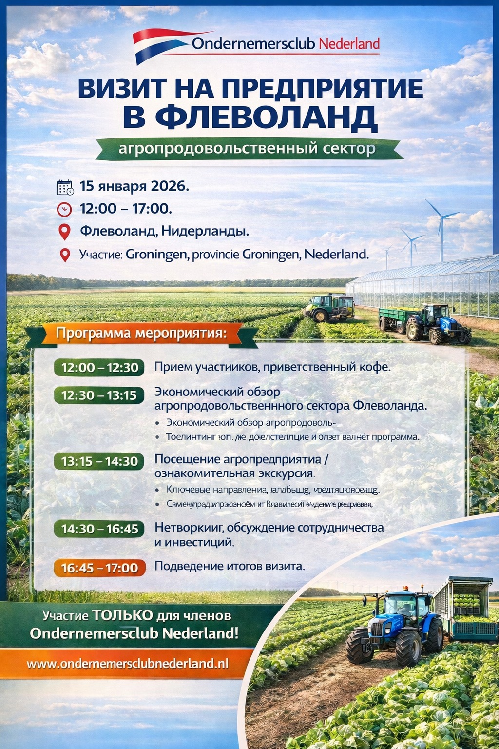 Groningen Groningen, NetherlandsProgramma van de bijeenkomst Ondernemersclub Nederland. Thema: Zakelijke kansen en samenwerking met de Baltische Staten.(Estland • Letland • Litouwen). Datum: 14 januari 2026.Tijd: 09:00 – 13:00.Locatie: Groningen, provincie Groningen, Nederland. Belangrijke informatie:Deze bijeenkomst is uitsluitend bedoeld voor leden van Ondernemersclub Nederland. Programma. 09:00 – 09:30 Registratie van deelnemers. 09:30 – 09:45 Officiële opening. Welkomstwoord door […]